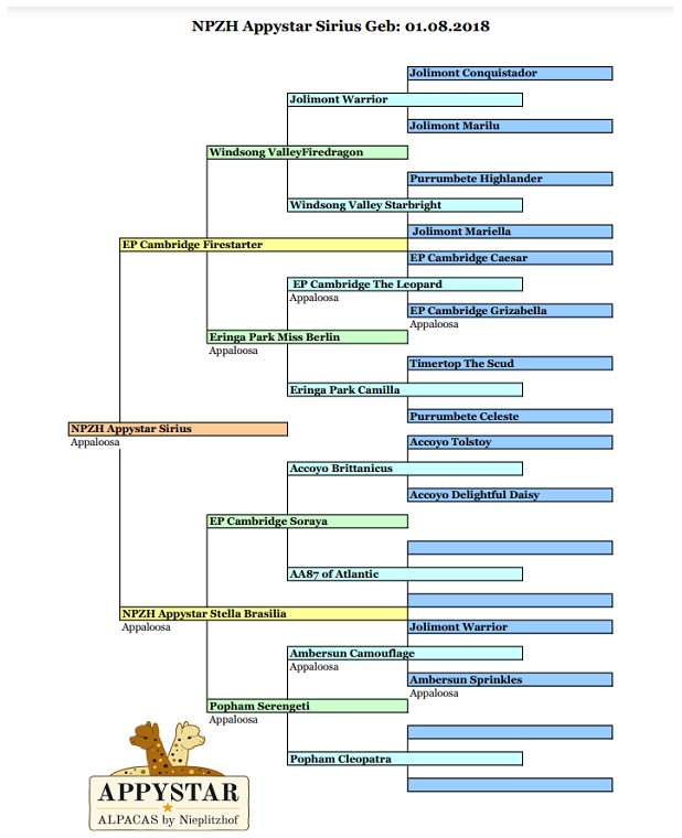 nachweislich aus der 4.Generation der Ambersun Appaloosa Alpakas aus